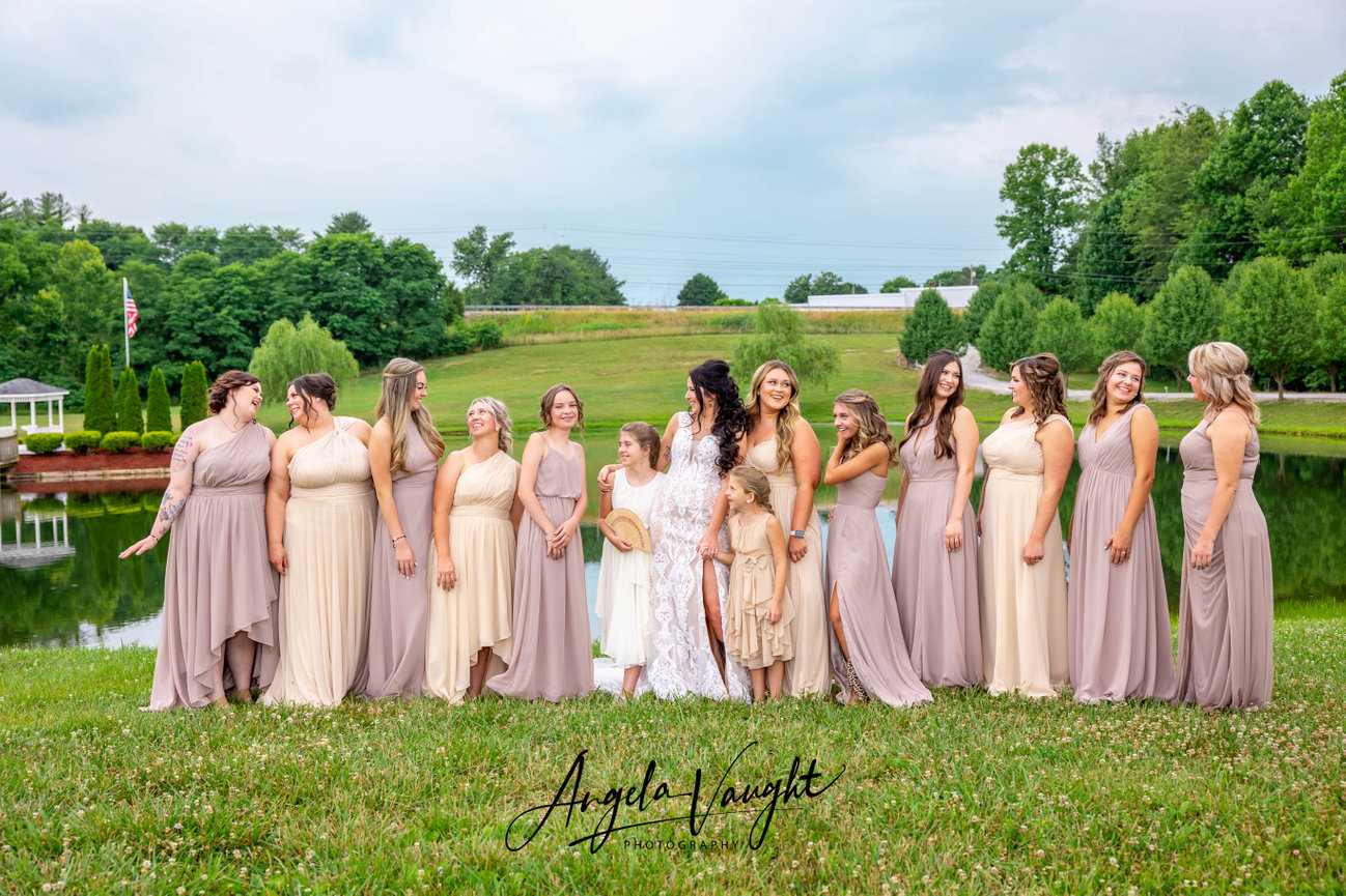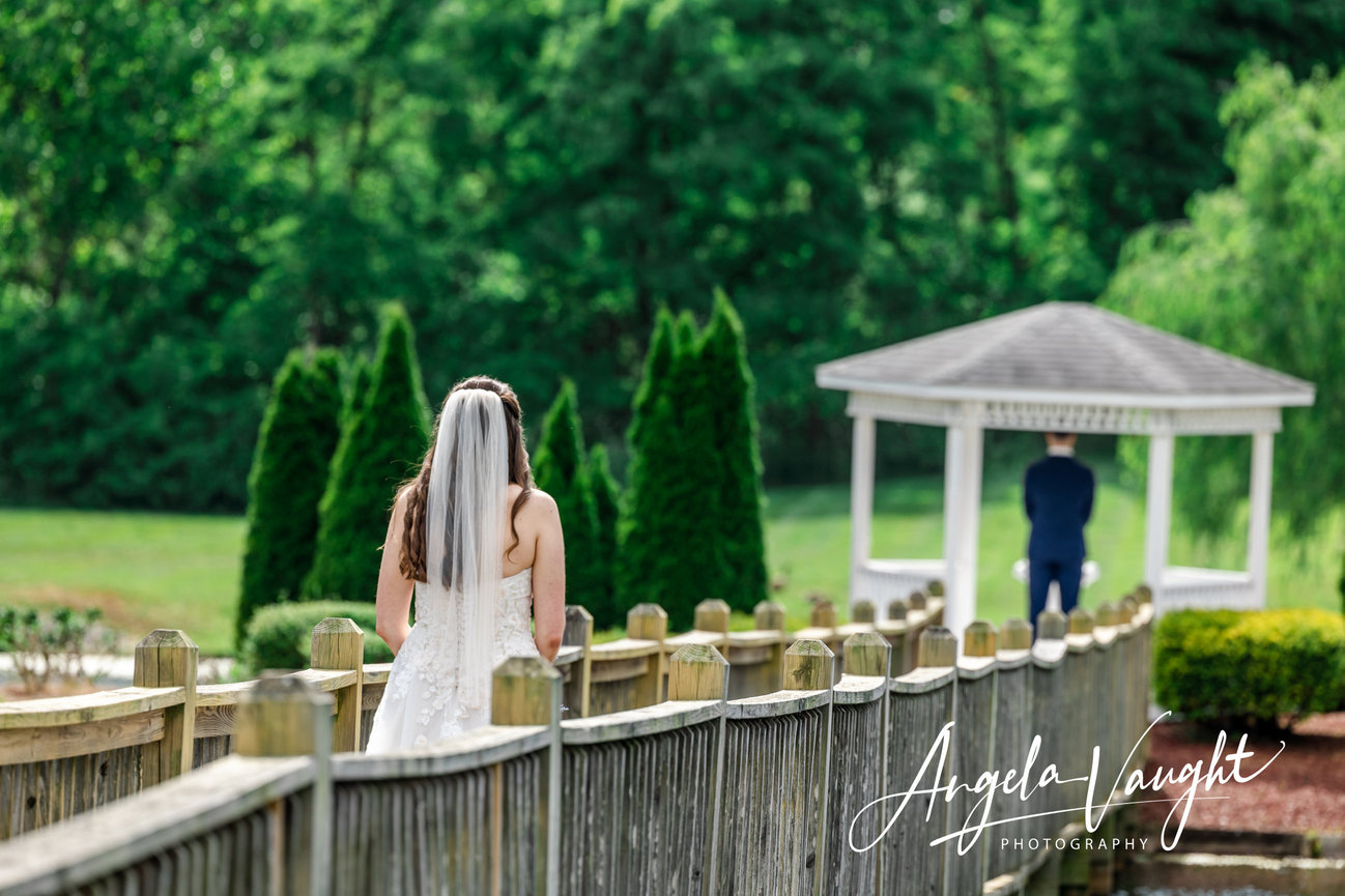 The house has two kitchens, a large bar with a seating area, a bridal suite and a groom’s suite. The main reception and seating area has gleaming hardwood floors, a huge stone fireplace and a balcony overlooking the main floor. Outside, there is a pool and a large pavilion with festive lighting.
